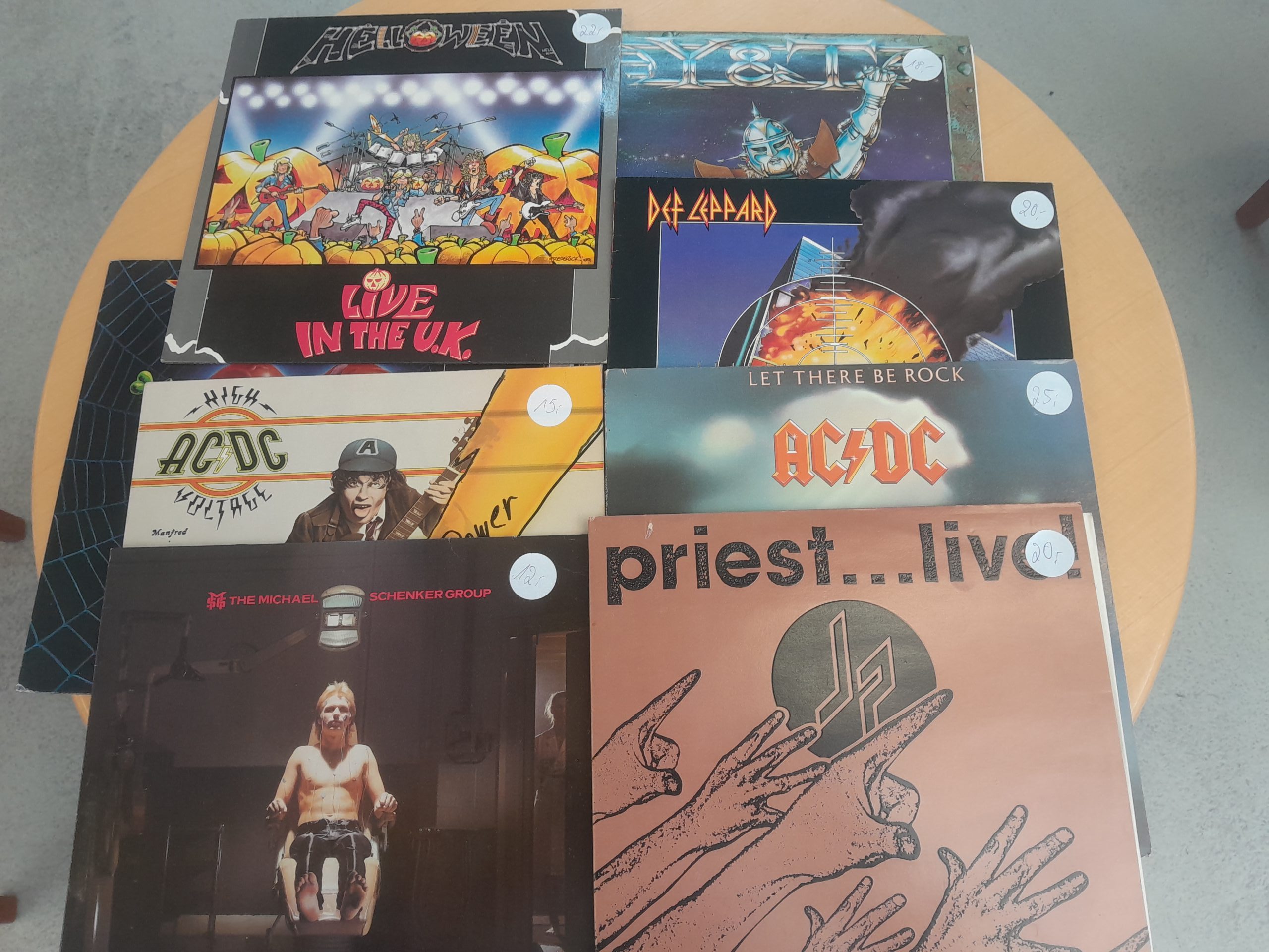 Manchmal wundern wir uns schon, welche Art von Musik bei uns landet. Ende März kam ein Plattenturm bei uns an, mit ca. 300 eingeschweißten Schallplatten, die alle sehr gut erhalten und vor allen Dingen ziemlich konsequent eine einzige Stilrichtung bearbeitet: Heavy Metal. Die Liste der Bands ist lang und edel: AC/DC, Helloween, Def Leppard, Michael Schenker Group, Scorpions, Iron Maiden, Quit Riot und viele, viele mehr. Nicht alle Platten haben wir bisher ausgepreist, aber wer nicht fündig wird, kann auch im Büro nachfragen…